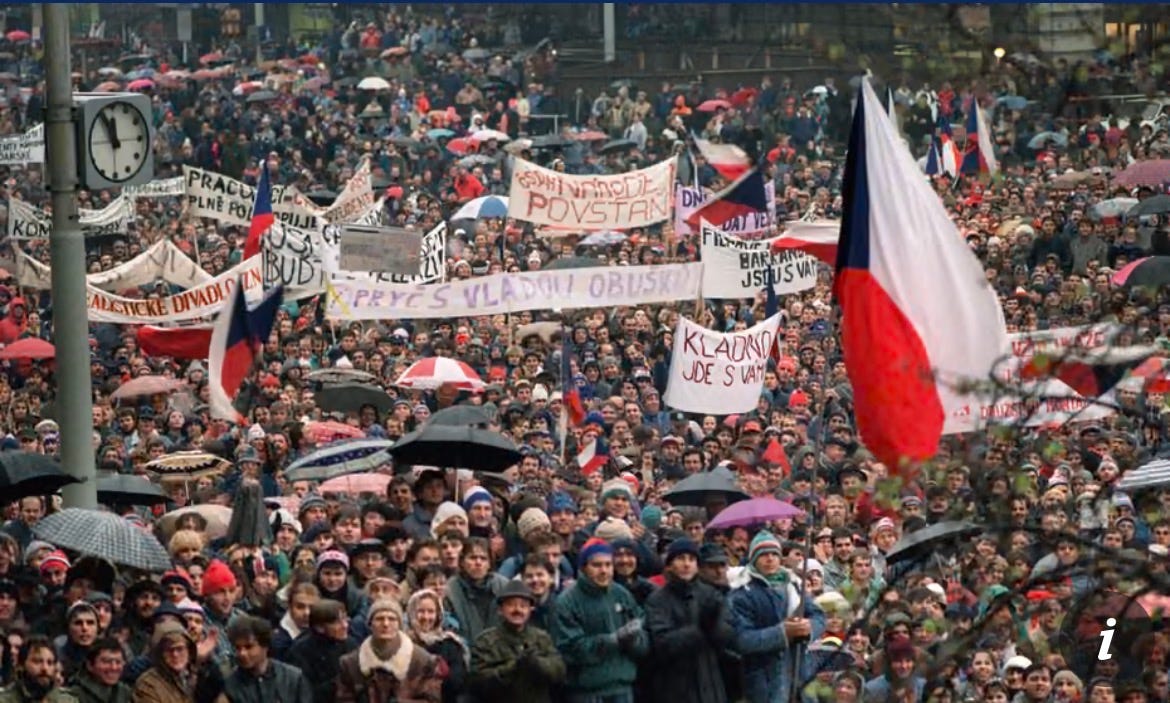 On Monday, November 20th, 1989, a mass demonstration of 100,000 people was held in Prague. Students and actors declared a permanent strike, and the next day demonstrations were held in major cities across Czechoslovakia. On November 27th a two hour (you read that correctly) general strike was attended by 75% of the population. On November 29th the Communist party removed the clause about its "leading role" from the constitution, and on December 7th the government resigned. On December 29th Vaclav Havel became president of the Czech Republic.